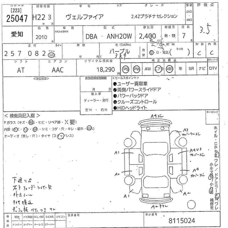 TOYOTA VELLFIRE - лот 25047