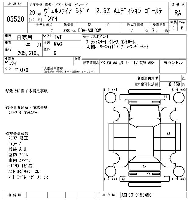 TOYOTA VELLFIRE - лот 5520