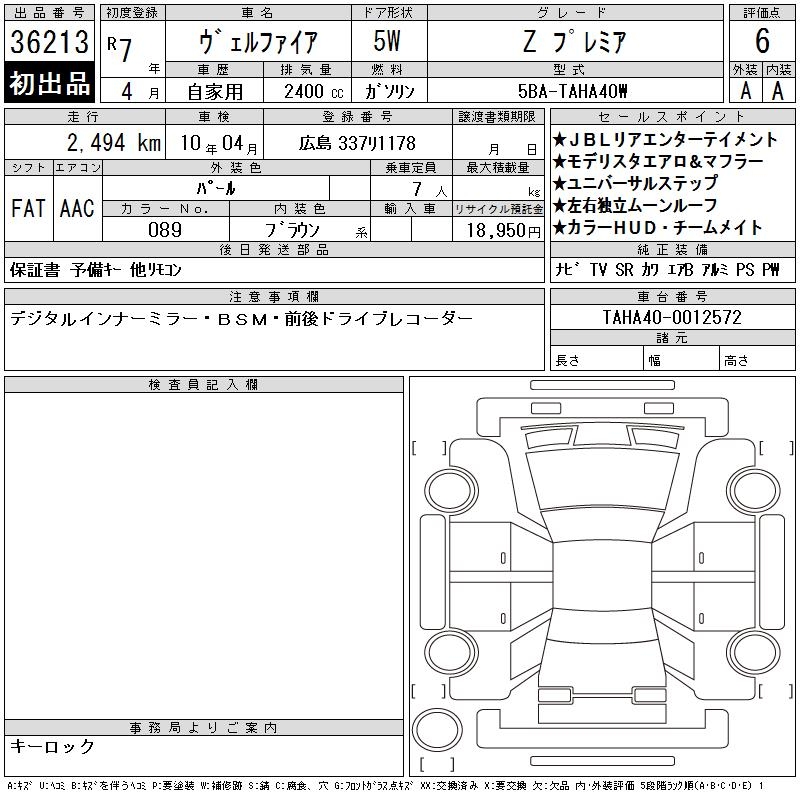 TOYOTA VELLFIRE - лот 36213