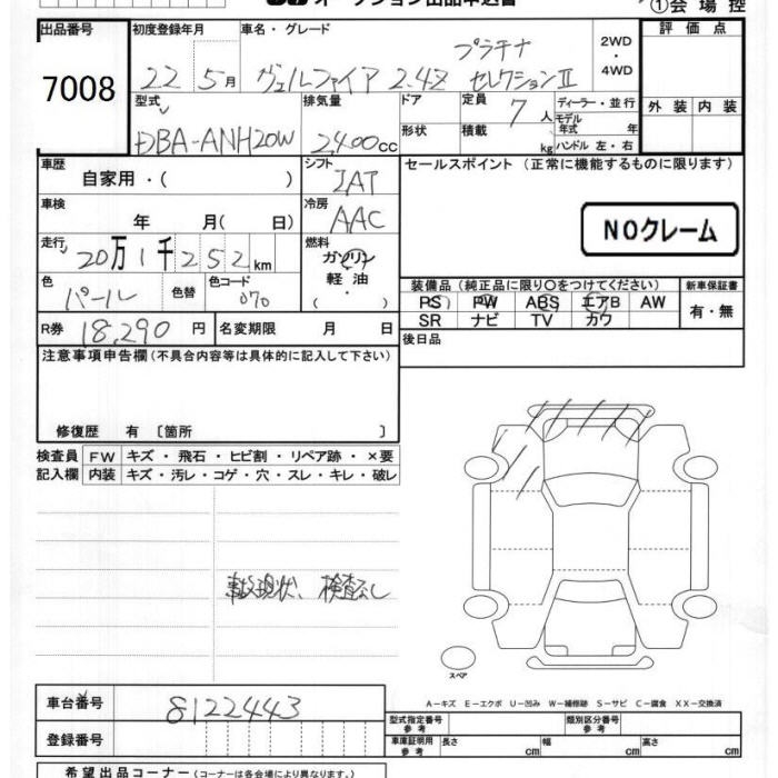 TOYOTA VELLFIRE - лот 7008