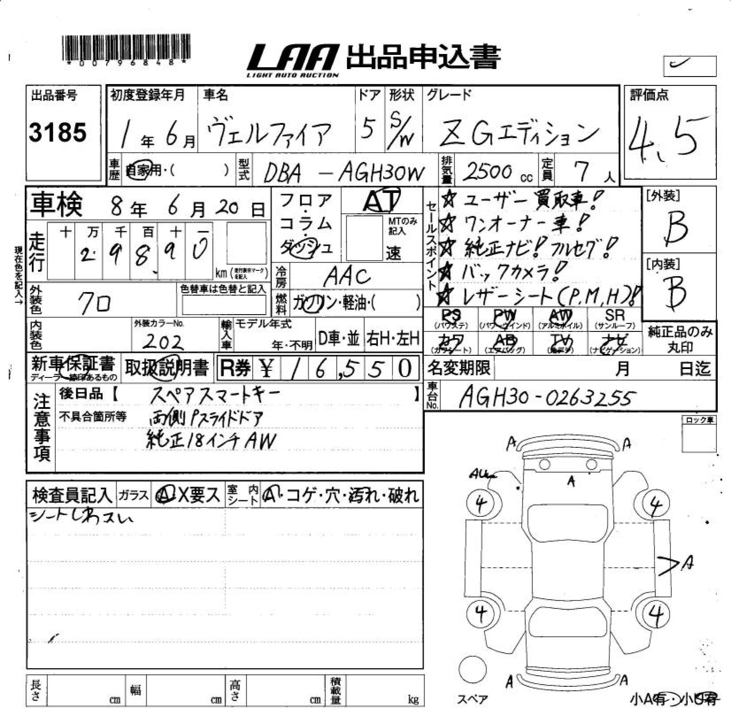 TOYOTA VELLFIRE - лот 3185