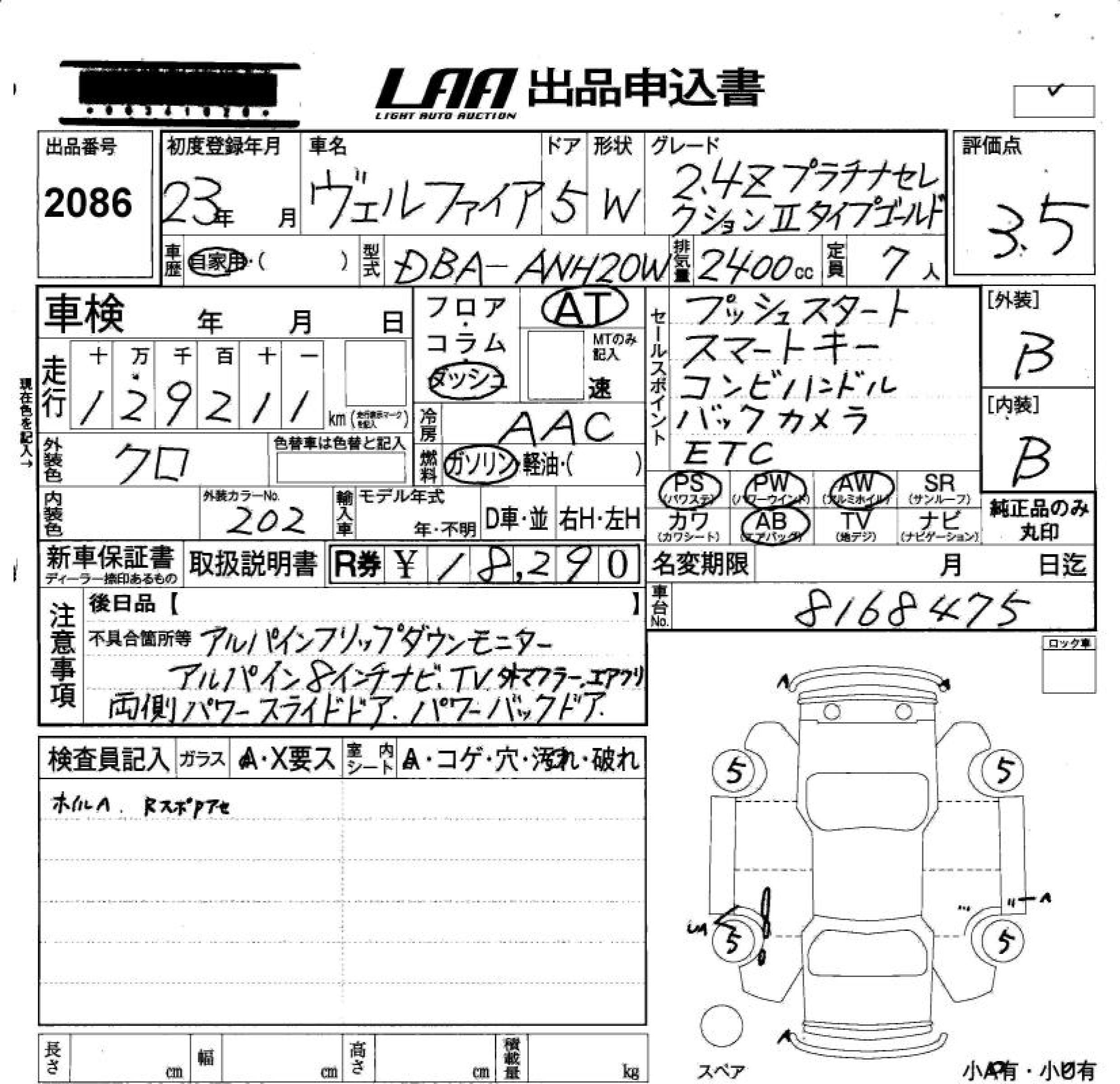 TOYOTA VELLFIRE - лот 2086
