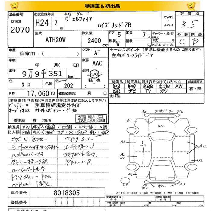 TOYOTA VELLFIRE - лот 2070