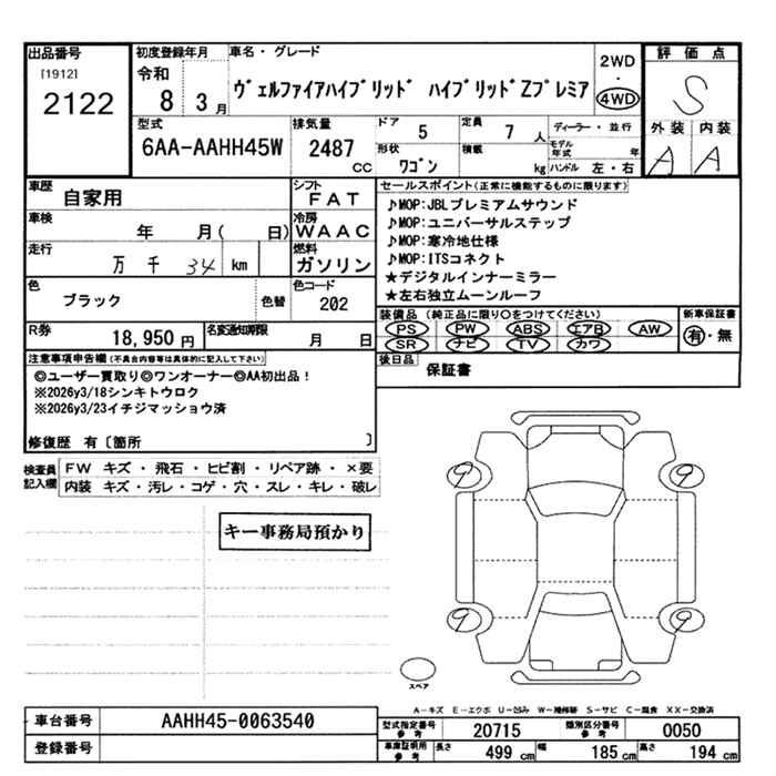 TOYOTA VELLFIRE - лот 2122