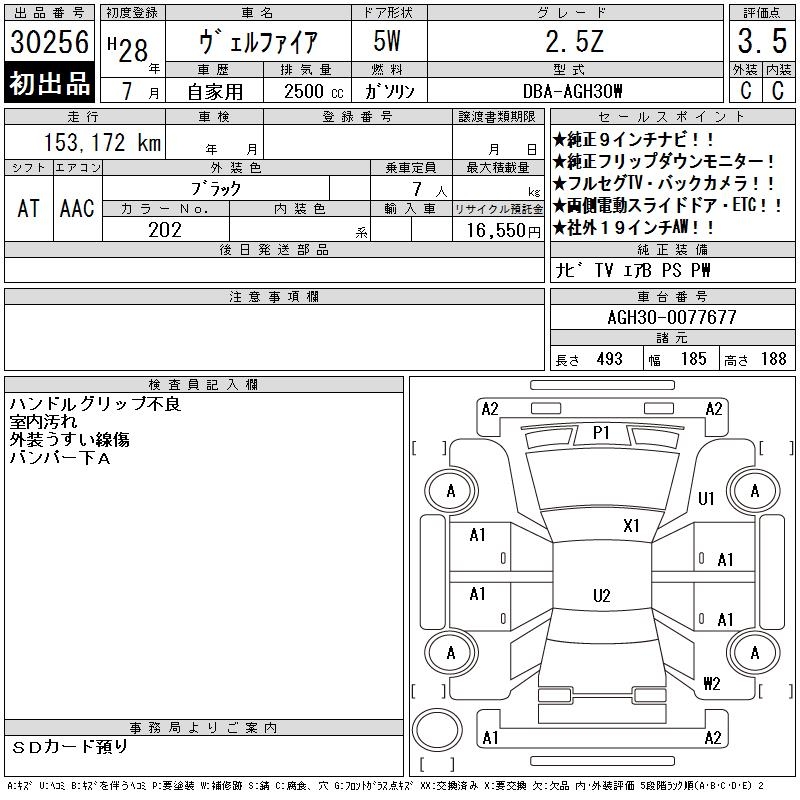 TOYOTA VELLFIRE - лот 30256