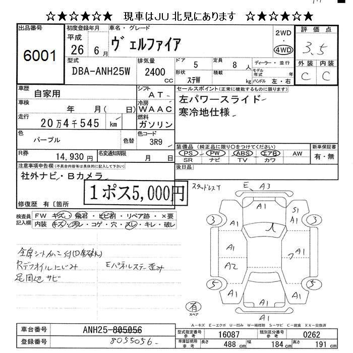 TOYOTA VELLFIRE - лот 6001