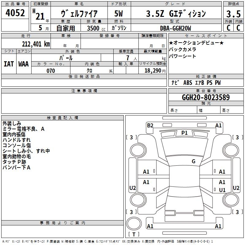 TOYOTA VELLFIRE - лот 4052