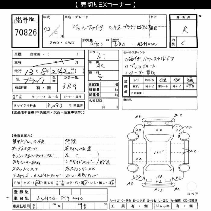 TOYOTA VELLFIRE - лот 70826
