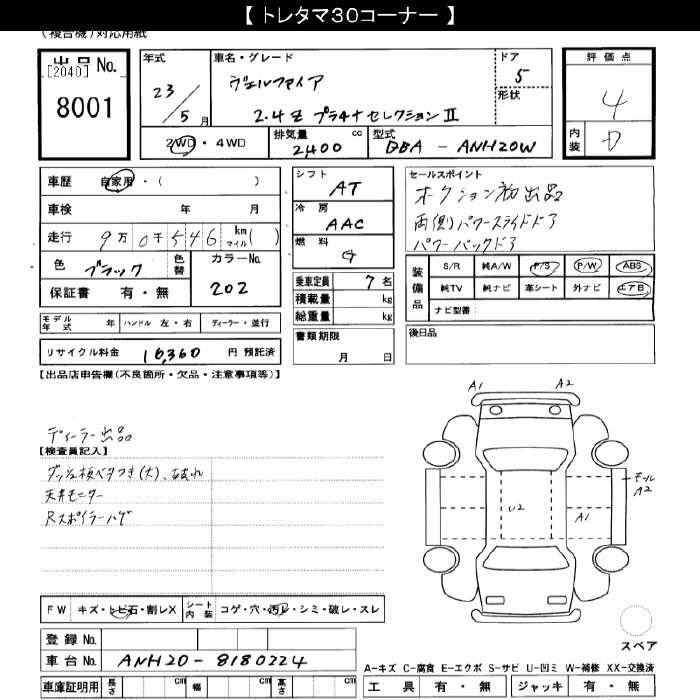 TOYOTA VELLFIRE - лот 8001
