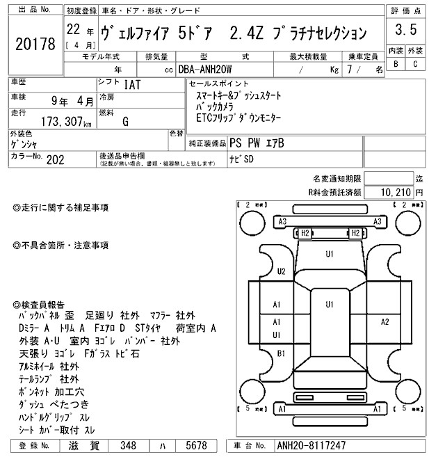 TOYOTA VELLFIRE - лот 20178