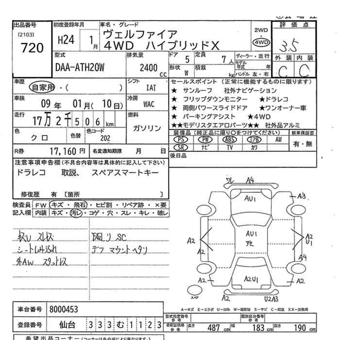 TOYOTA VELLFIRE - лот 720