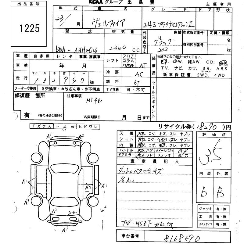 TOYOTA VELLFIRE - лот 1225
