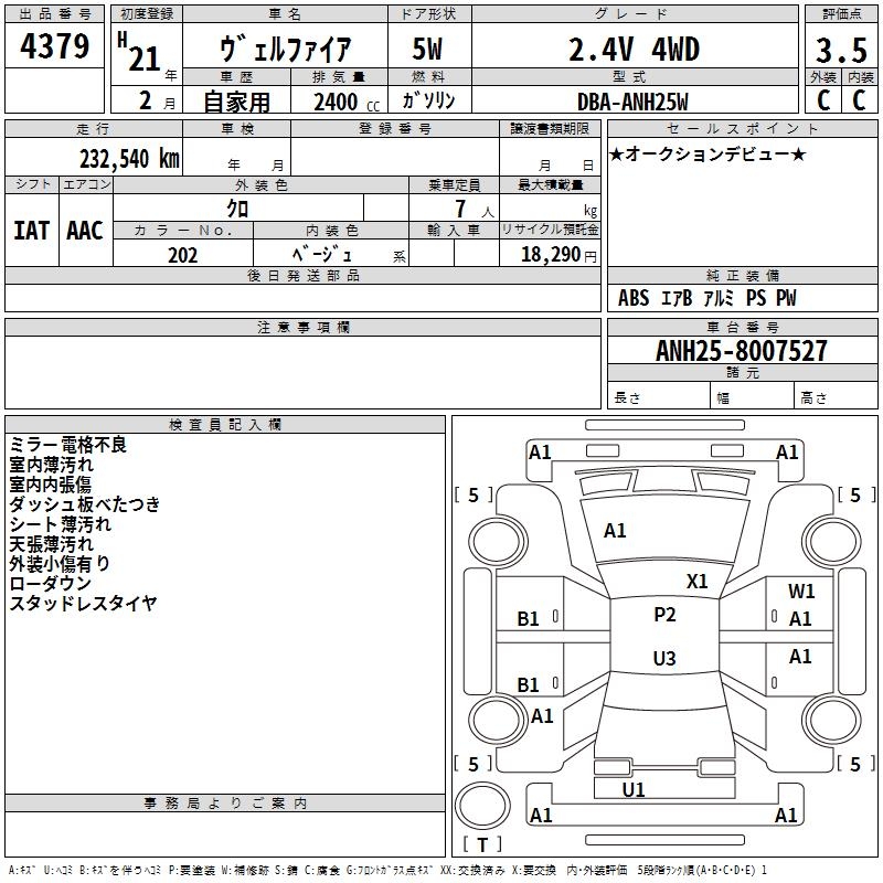 TOYOTA VELLFIRE - лот 4379