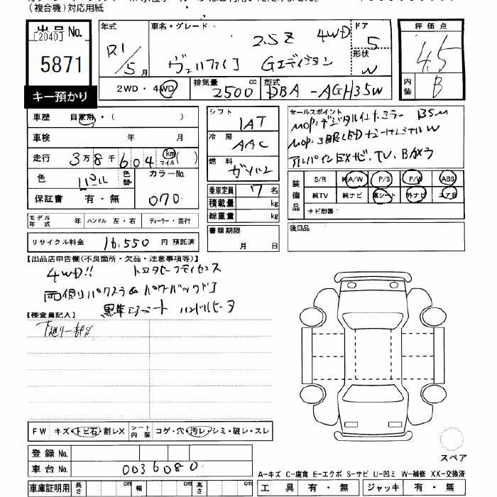 TOYOTA VELLFIRE - лот 5871