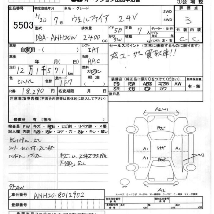 TOYOTA VELLFIRE - лот 5503