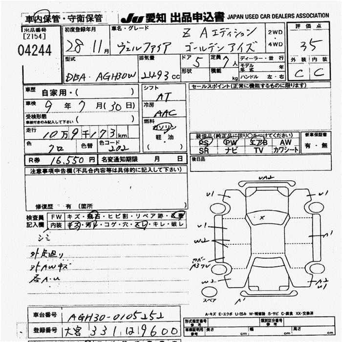TOYOTA VELLFIRE - лот 4244