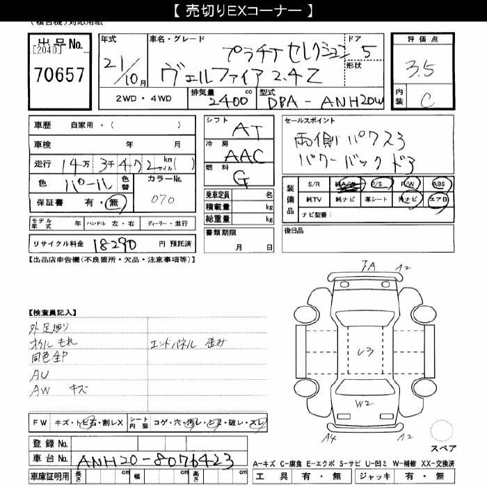 TOYOTA VELLFIRE - лот 70657