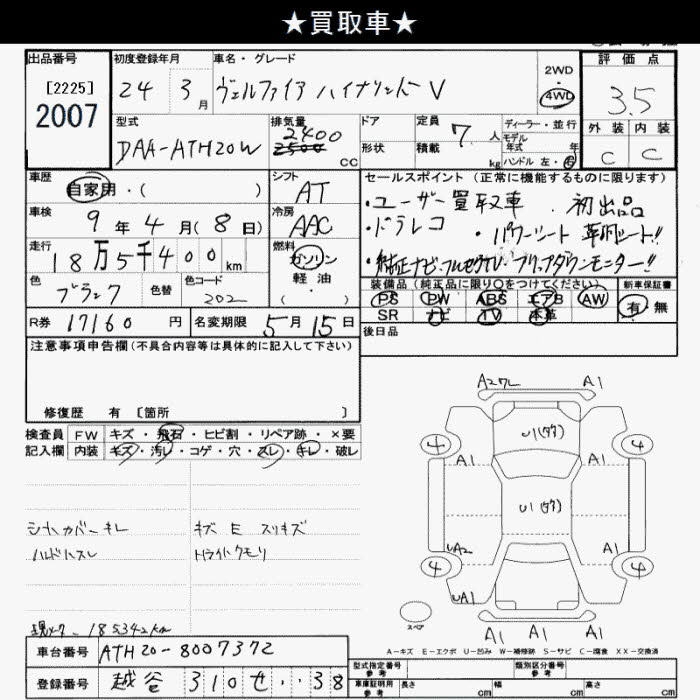 TOYOTA VELLFIRE - лот 2007