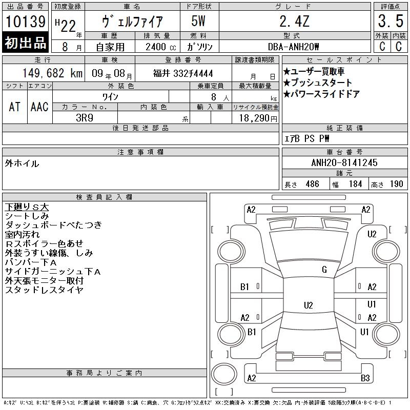 TOYOTA VELLFIRE - лот 10139