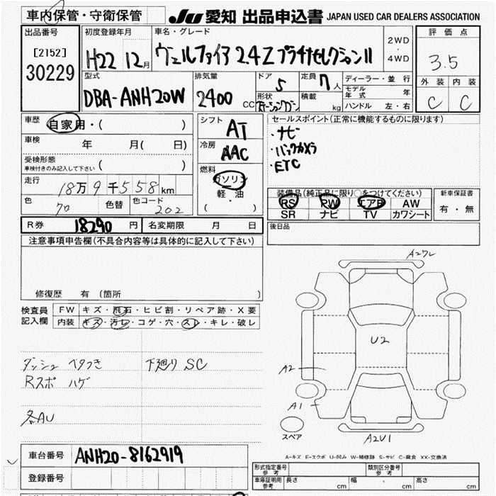TOYOTA VELLFIRE - лот 30229