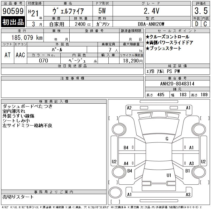 TOYOTA VELLFIRE - лот 90599