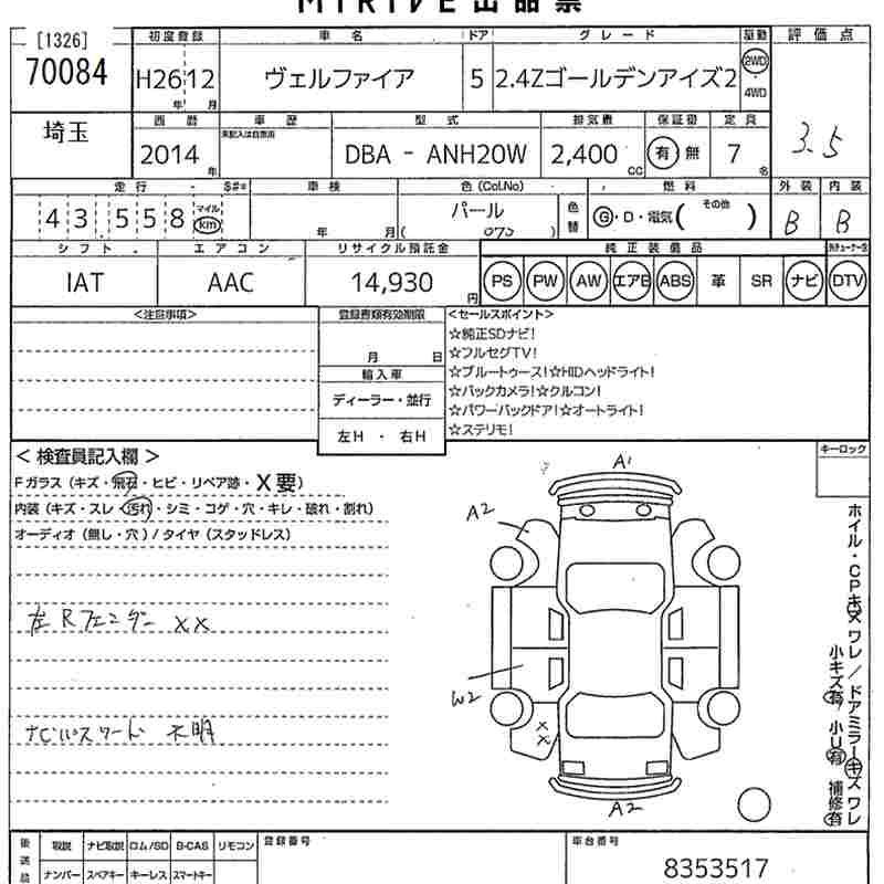 TOYOTA VELLFIRE - лот 70084