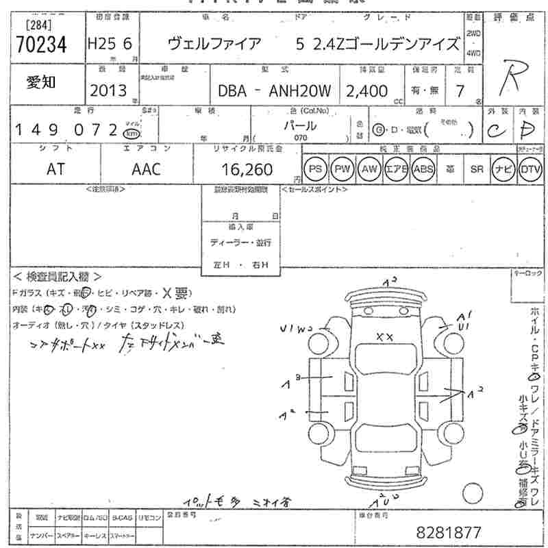 TOYOTA VELLFIRE - лот 70234