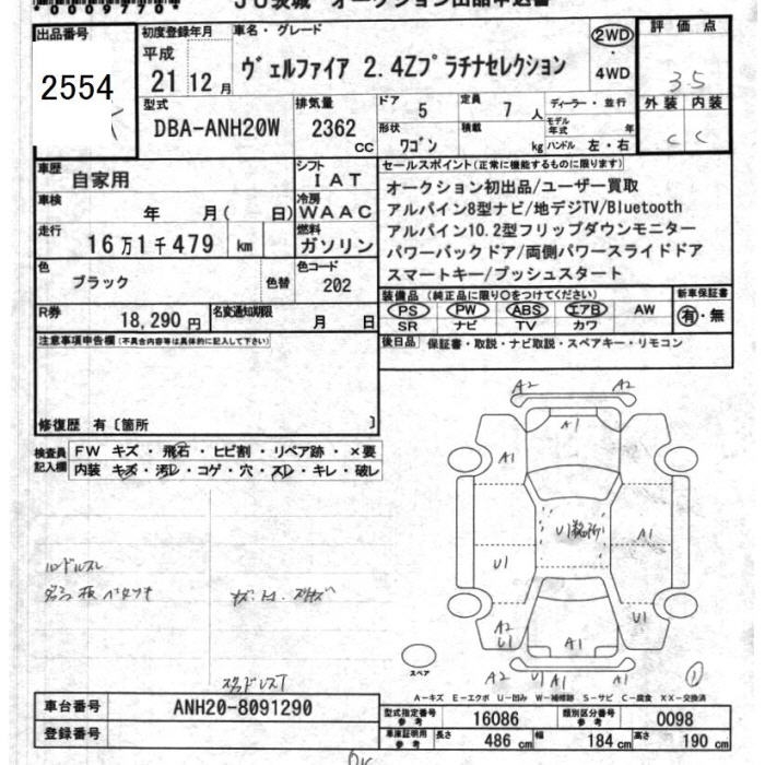 TOYOTA VELLFIRE - лот 2554