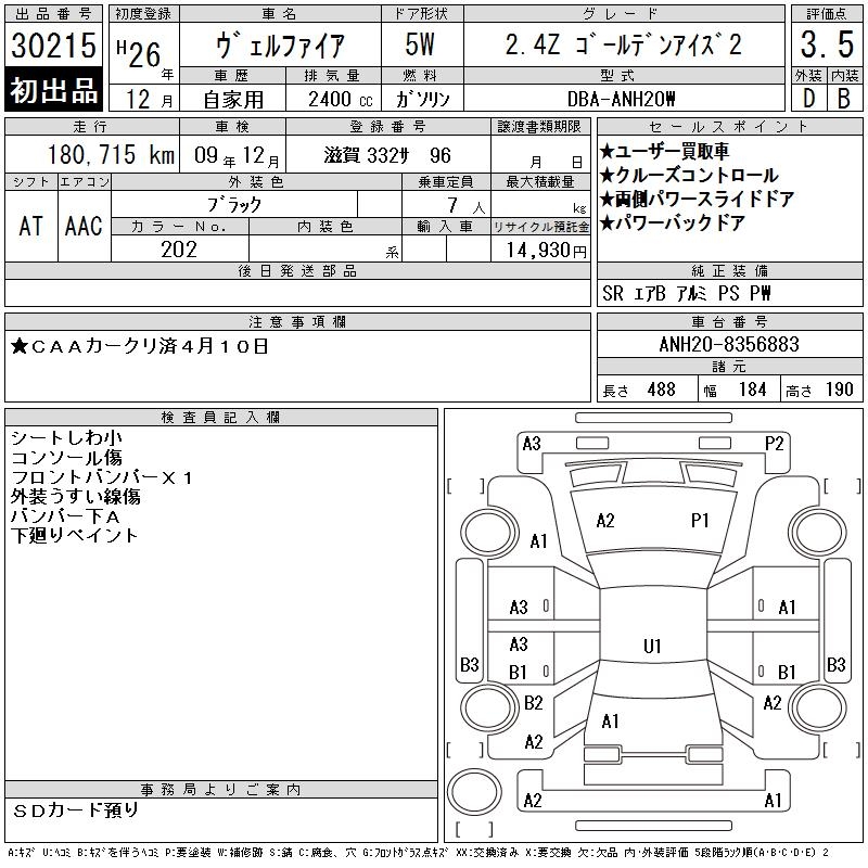 TOYOTA VELLFIRE - лот 30215