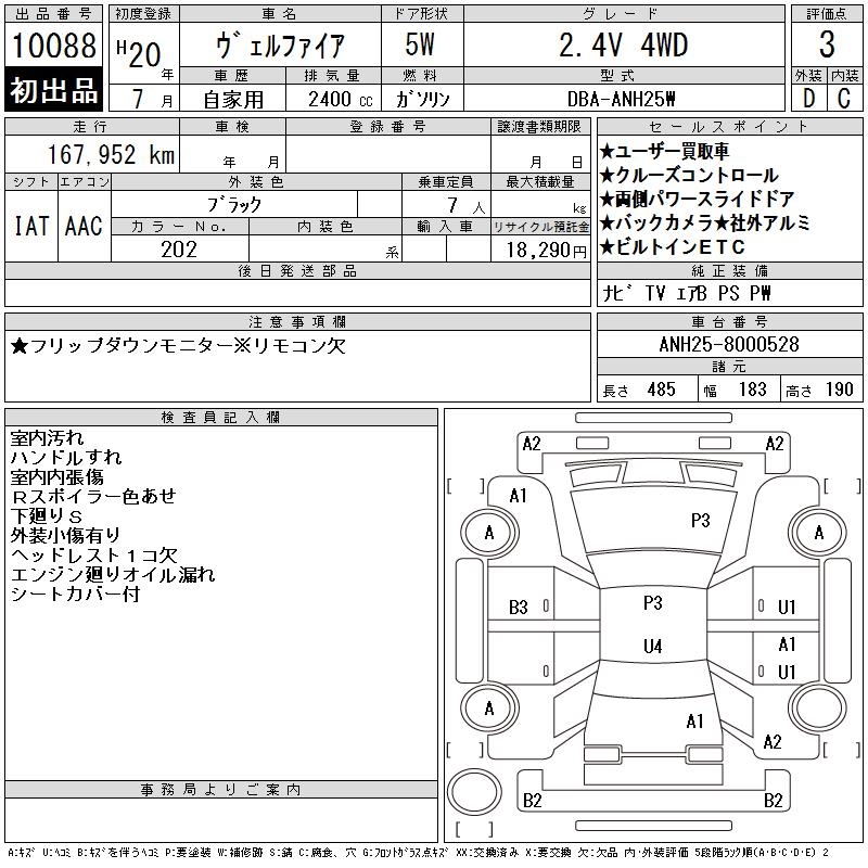 TOYOTA VELLFIRE - лот 10088