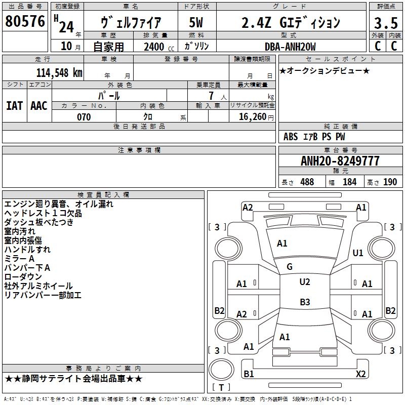 TOYOTA VELLFIRE - лот 80576