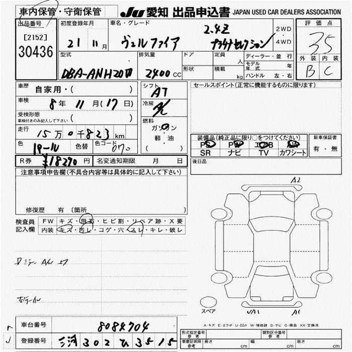TOYOTA VELLFIRE - лот 30436