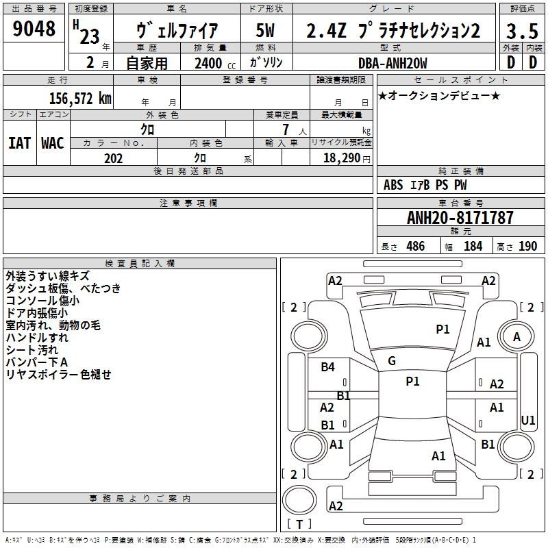 TOYOTA VELLFIRE - лот 9048