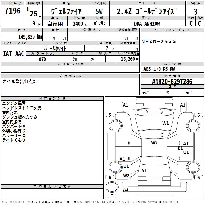TOYOTA VELLFIRE - лот 7196