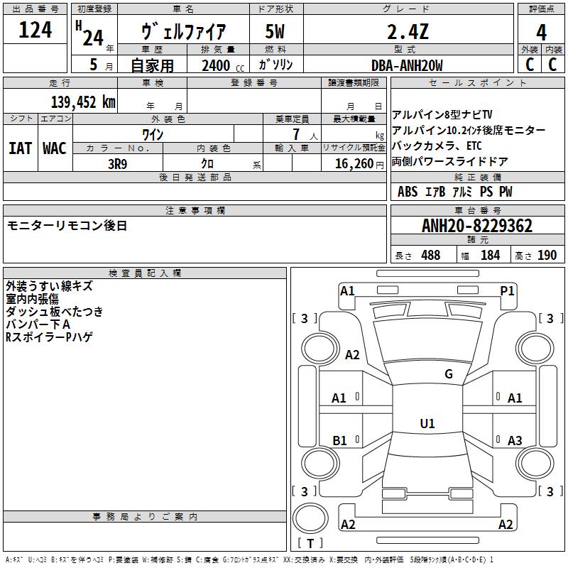 TOYOTA VELLFIRE - лот 124
