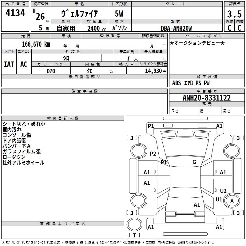 TOYOTA VELLFIRE - лот 4134