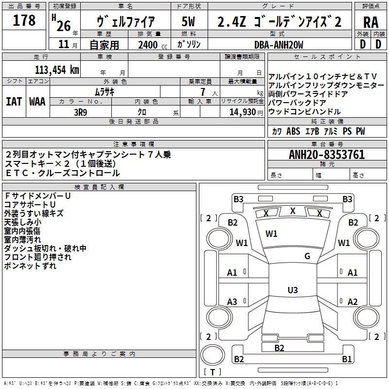 TOYOTA VELLFIRE - лот 178