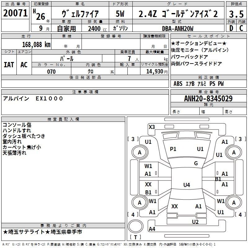 TOYOTA VELLFIRE - лот 20071