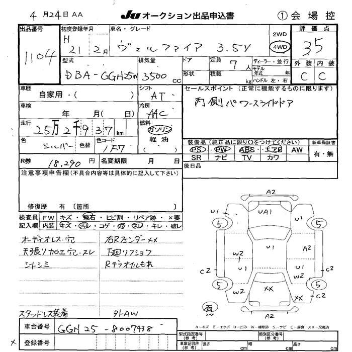 TOYOTA VELLFIRE - лот 1104
