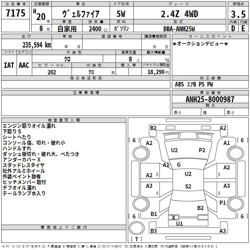 TOYOTA VELLFIRE - лот 7175