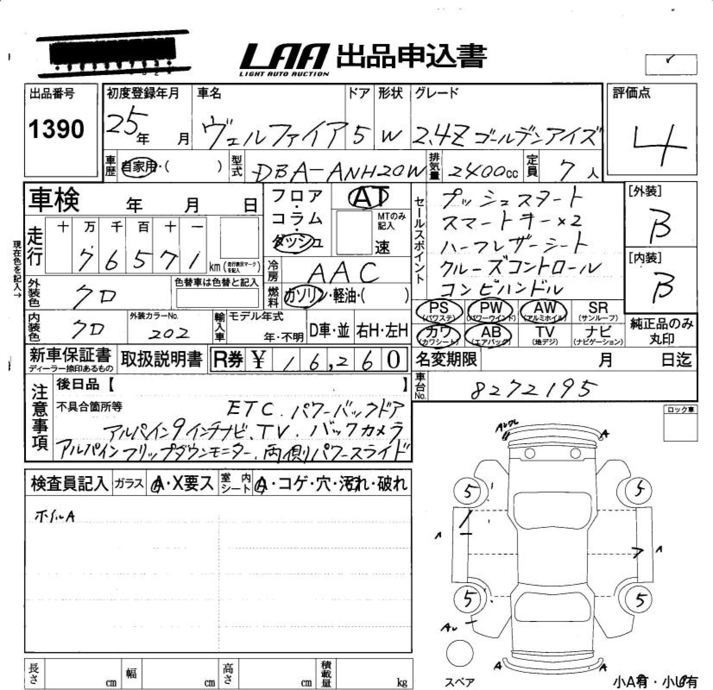 TOYOTA VELLFIRE - лот 1390