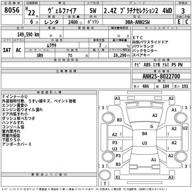 TOYOTA VELLFIRE - лот 8056