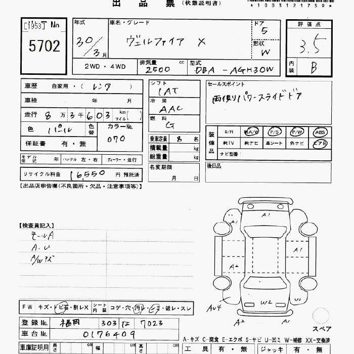 Статистика продаж TOYOTA VELLFIRE с аукционов Японии