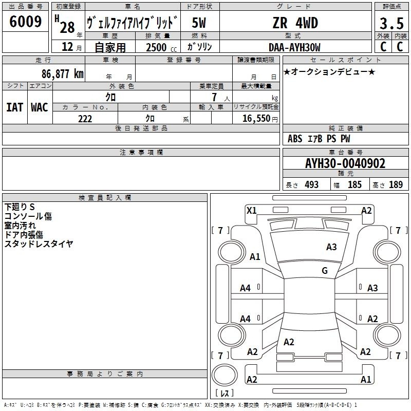 TOYOTA VELLFIRE HYBRID - лот 6009