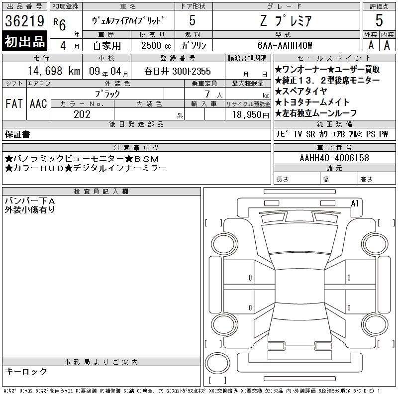 TOYOTA VELLFIRE HYBRID - лот 36219