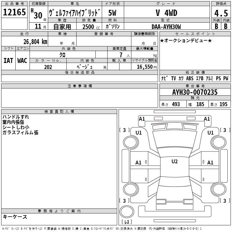 TOYOTA VELLFIRE HYBRID - лот 12165