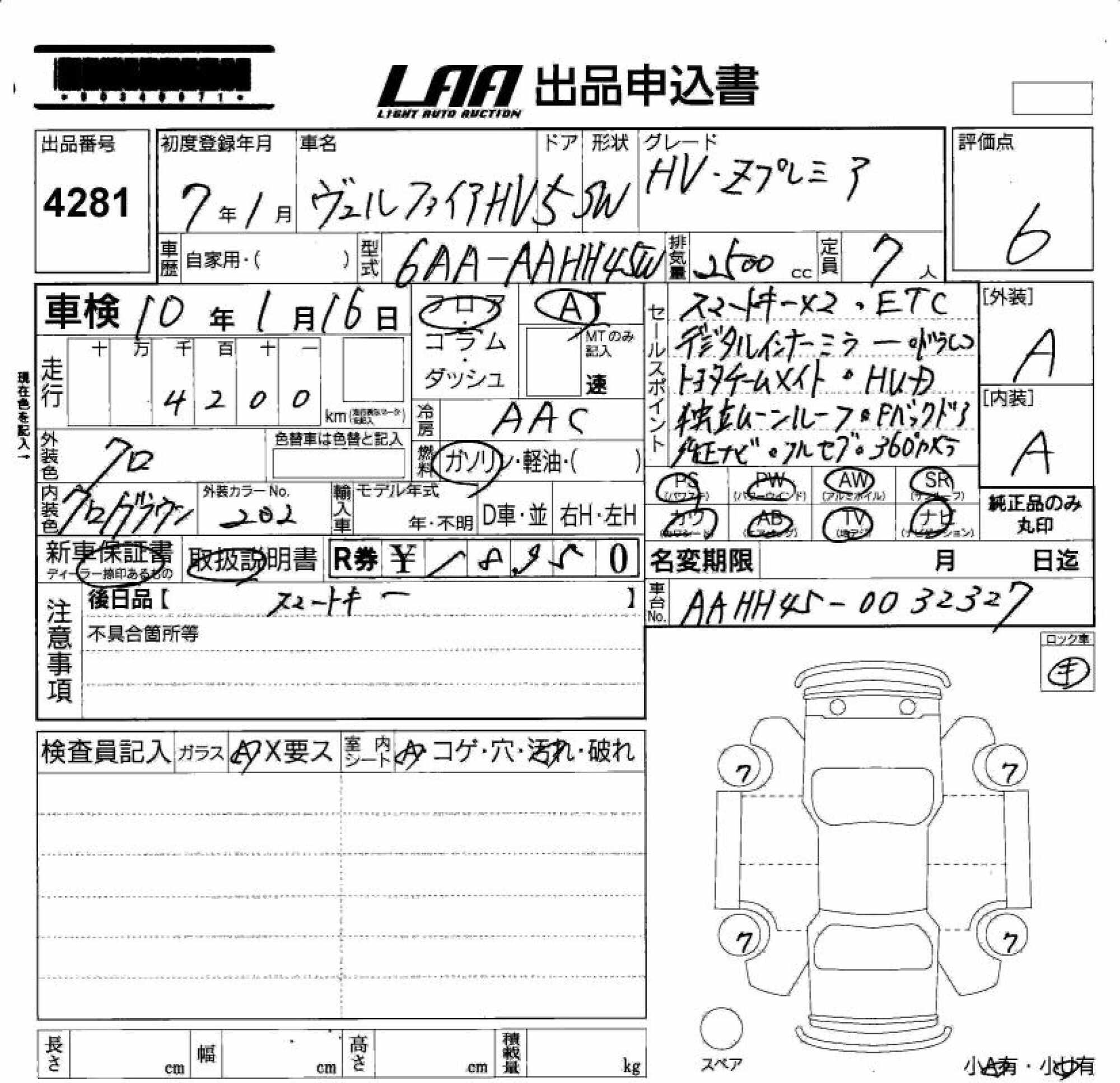 TOYOTA VELLFIRE HYBRID - лот 4281