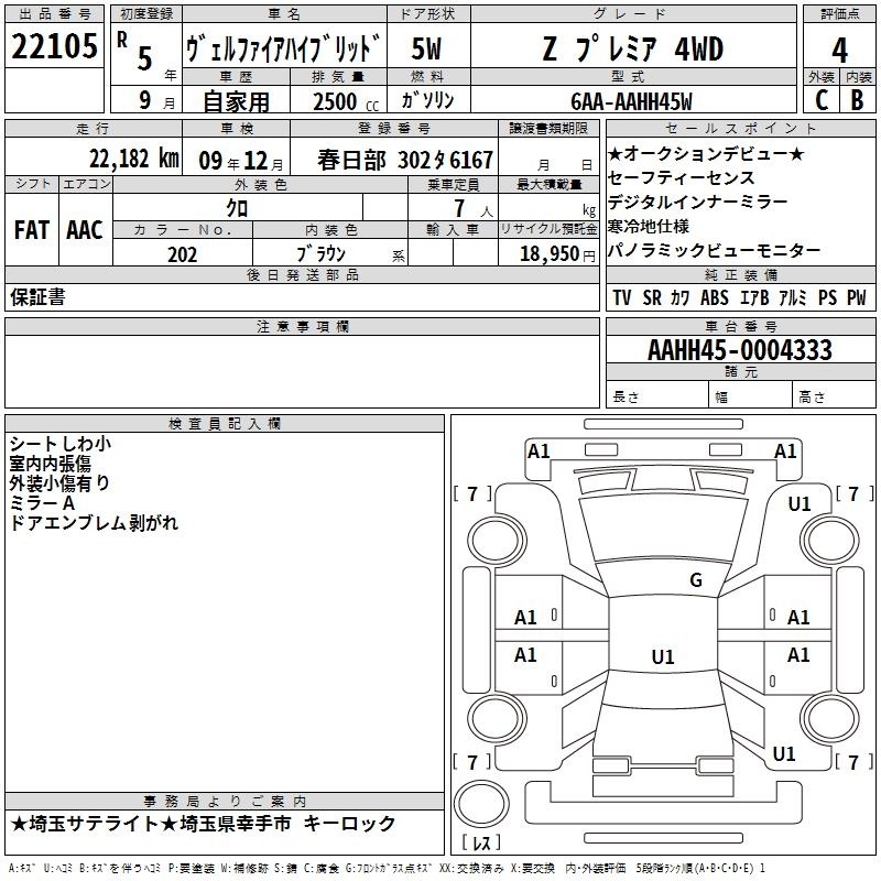 TOYOTA VELLFIRE HYBRID - лот 22105