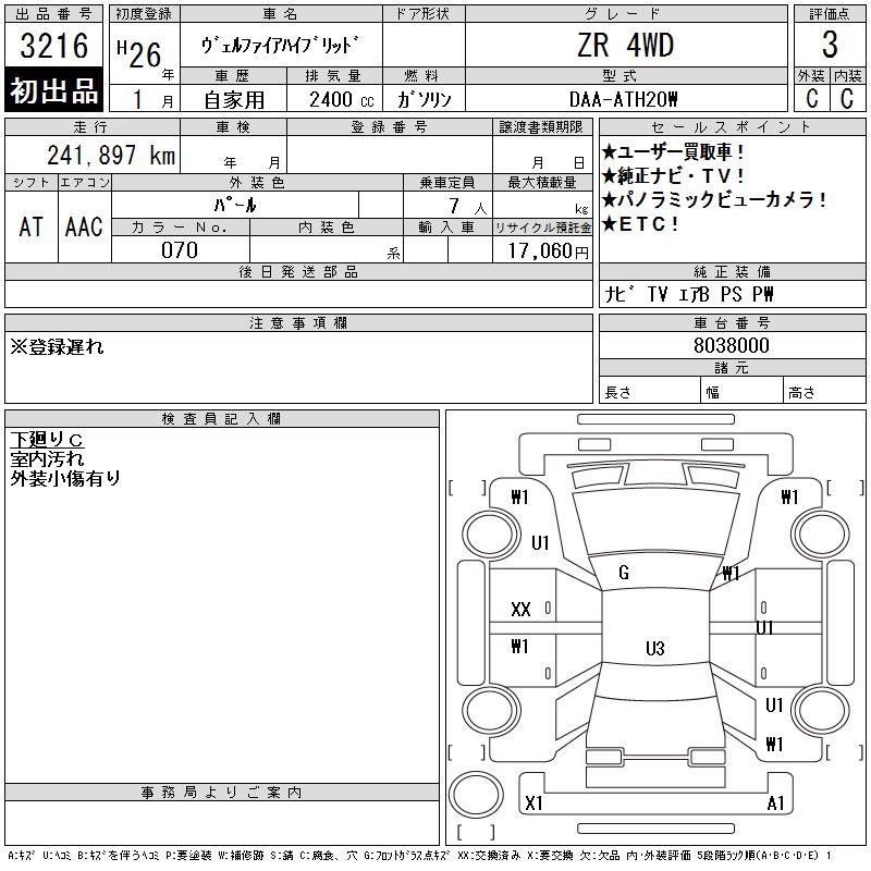 TOYOTA VELLFIRE HYBRID - лот 3216