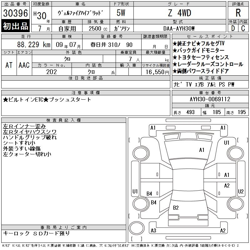TOYOTA VELLFIRE HYBRID - лот 30396